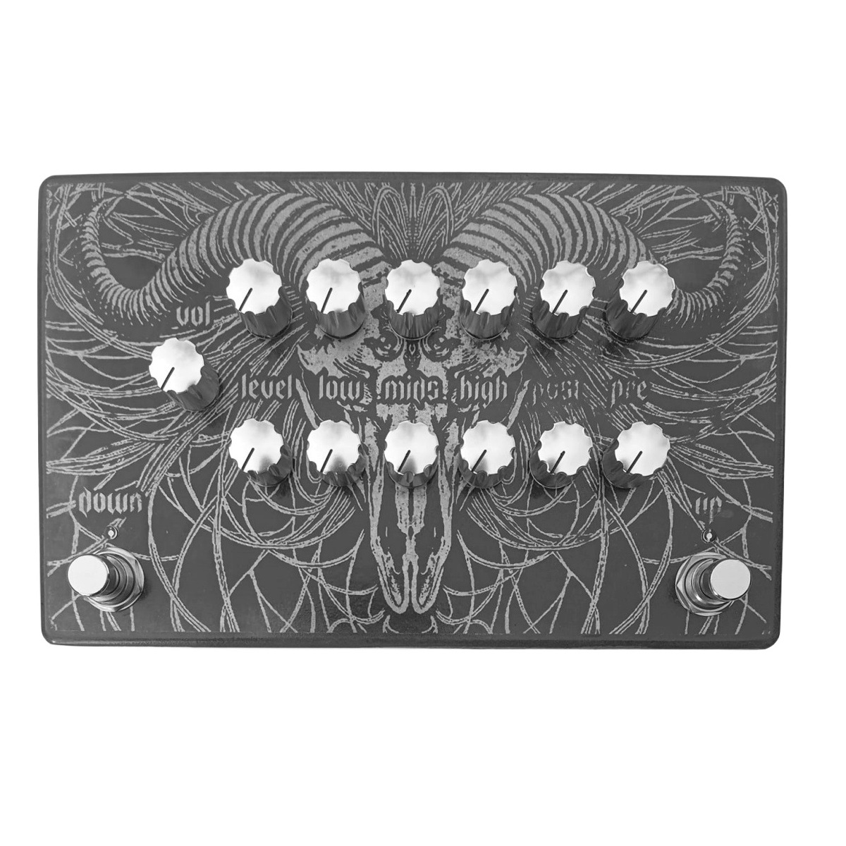 Splitted gain pot (pre+post, two stages) for better distortion adjustment.